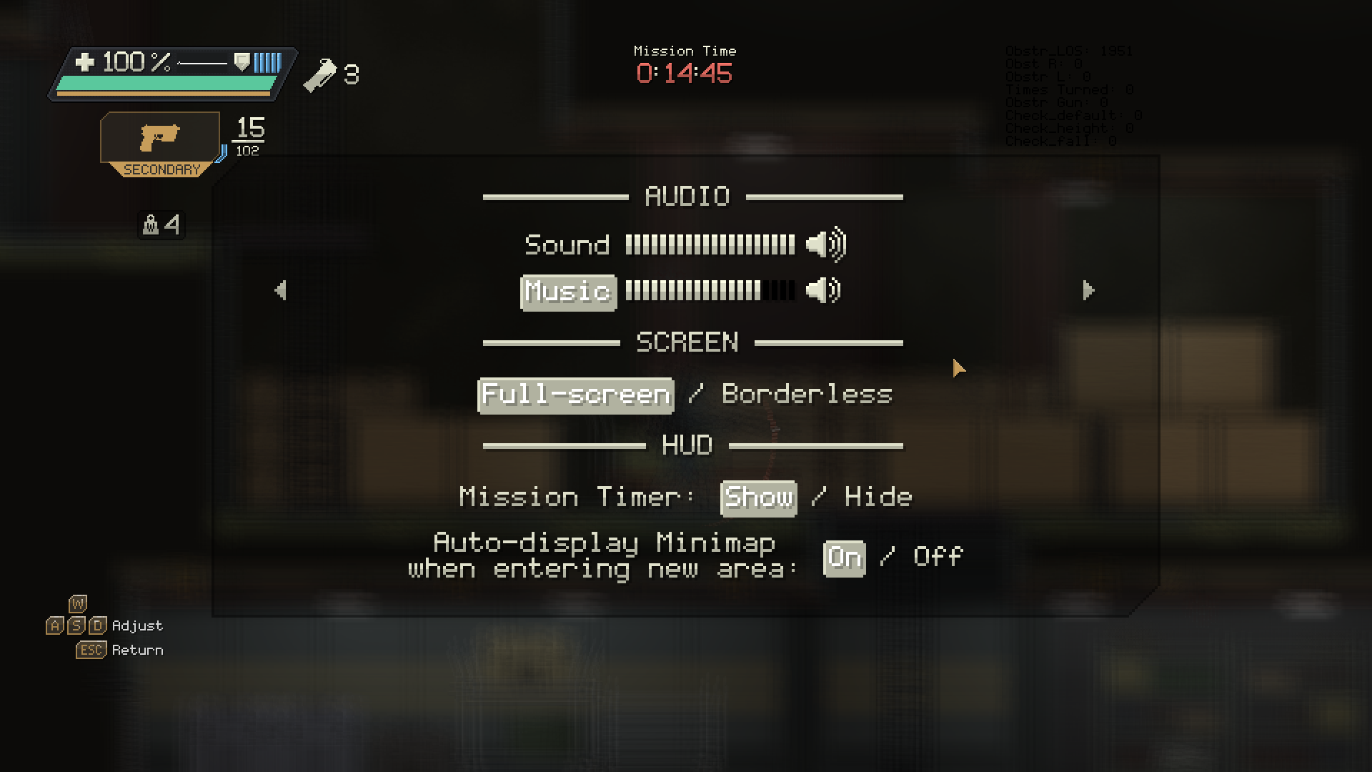 An update (v0.8.76) focusing on Quality of Life-improvements, as well as addressing a crucial bug causing Level Keycards to reset when enter new areas, that appeared in last update. A completely new modular Options Screen accessible in-game, increased range for Enemy Proximity Indicator with more visual clarity,. To make Bandage Kits more useful, they've been given a small (+15HP) health boost, and Passive Healing has been disabled. More settings will be added to the new Options Screen in future updates, this update laid the foundation.