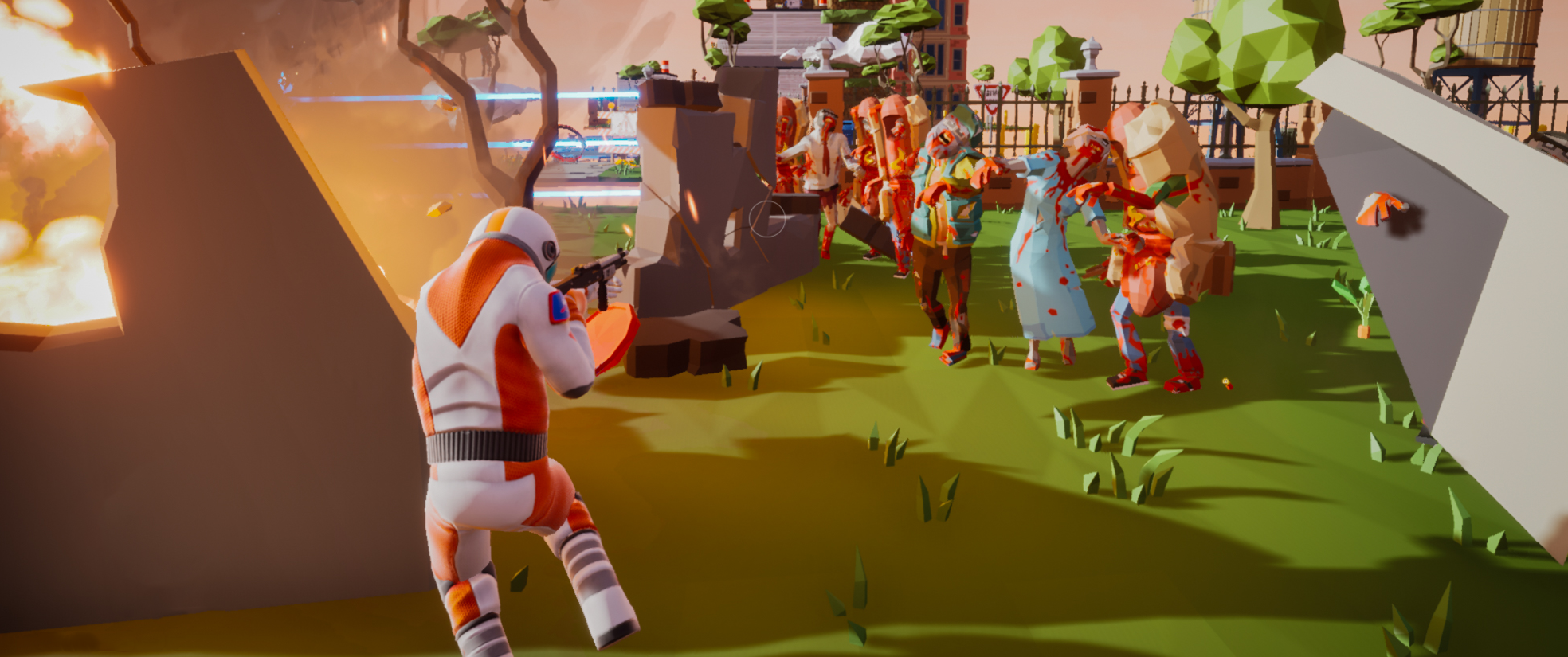 Test your skills at our 2-level demo filled with enemies, traps, and objectives to overcome, or come watch some of our players hop, shoot, and laugh their way through the levels in our very own livestream!