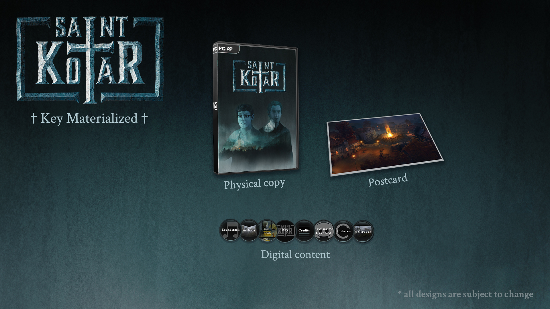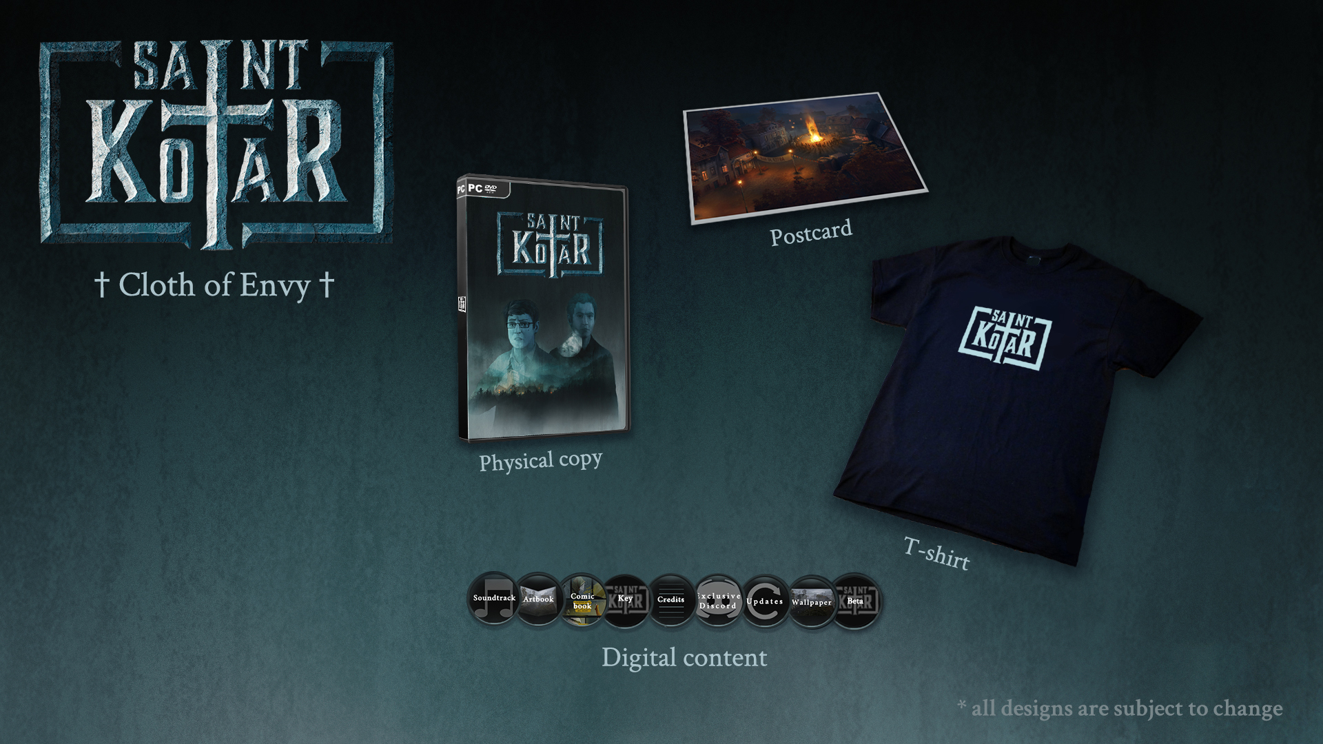 Among other rewards, you can get a physical copy (Steam or DRM-free) of Saint Kotar - Kickstarter exclusive!