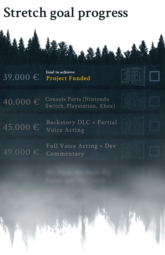 So far we've been backed by nearly 500 backers and the project is currently 44% funded, with 18 days to go. It's worth to mention that one of the backers bought the tier "Death Whisperer", priced at 2.000 €, which will make him appear in the full game as the town's only pathologist-coroner.