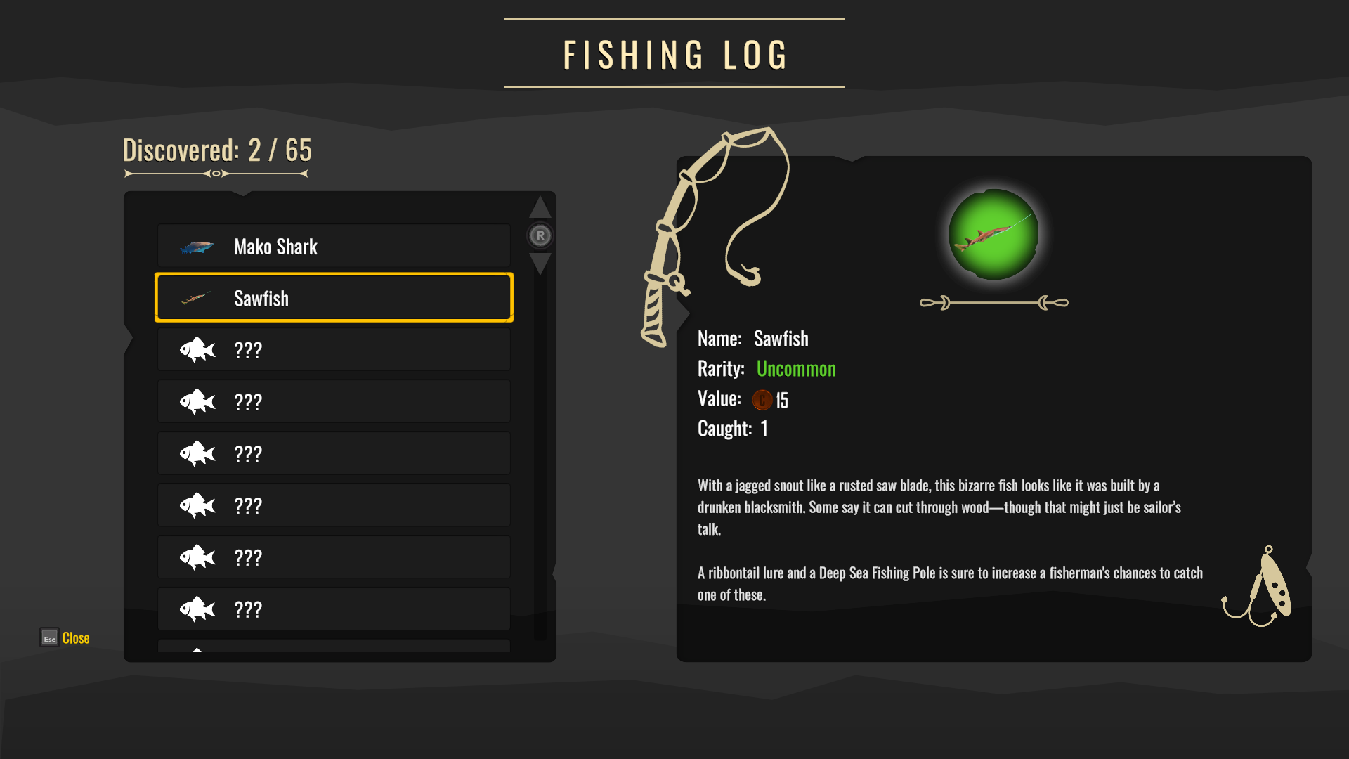 Added Fishing Log Book item that can be placed on your ship. This book allows you to view your fishing discoveries.