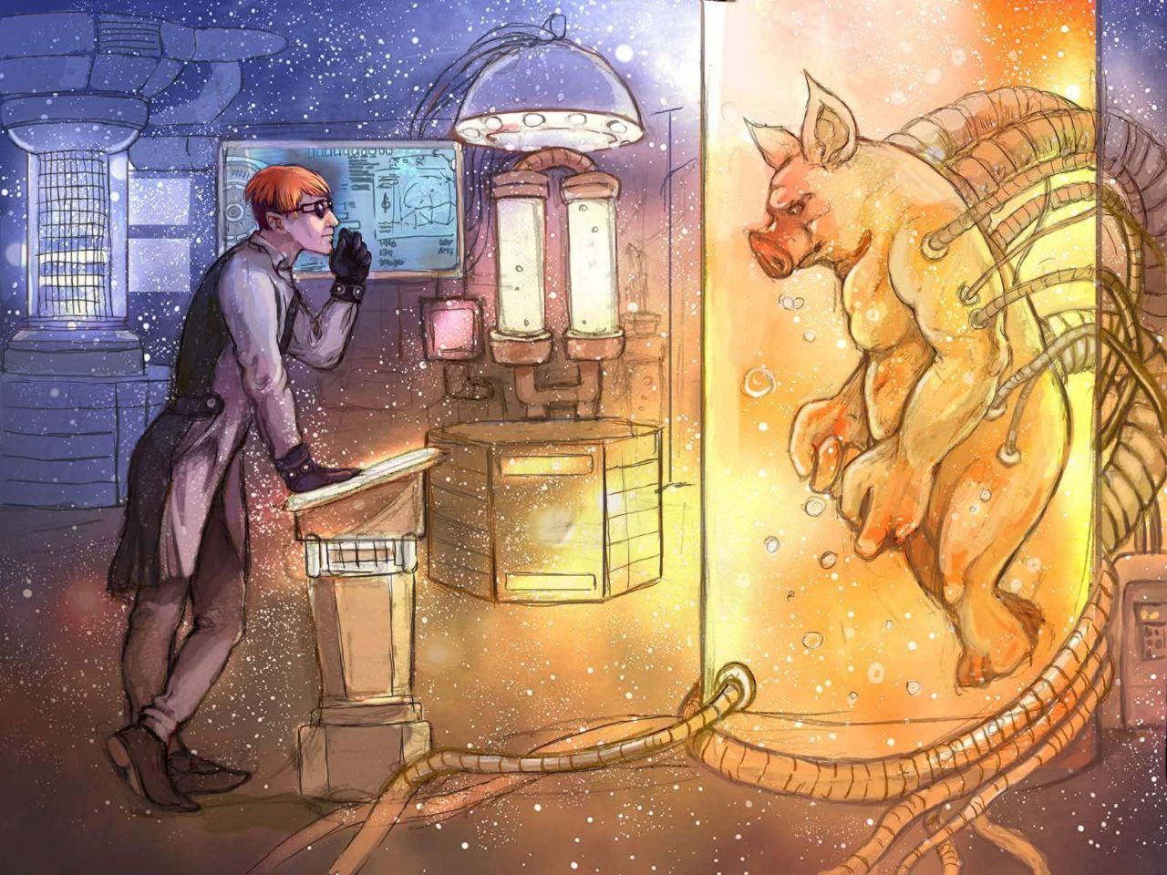 Thus began the era of fairly cheap labor. Pigs were sent to work on extraction of resources on unstable asteroids, to prepare planets for terraformation and to the farthest parts of the explored space. Of course, they needed constant supervision, but still it was more profitable than hiring people.