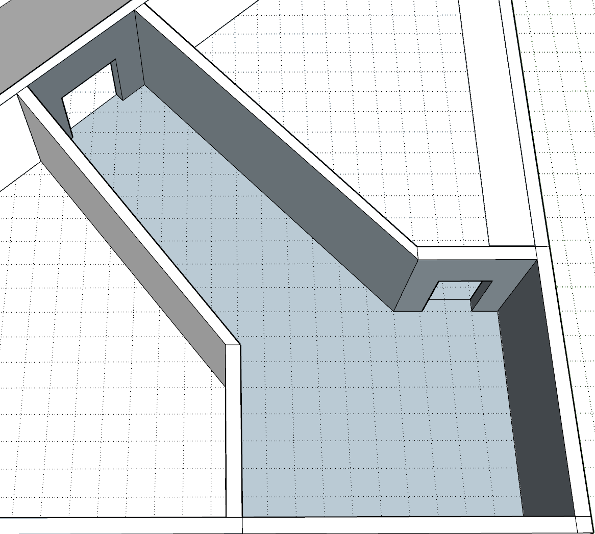 Mustafa:At the very first stage of designing sector 5.1, we faced the problem of geometry, namely the problem of “placing rectangular walls along the diagonal”.