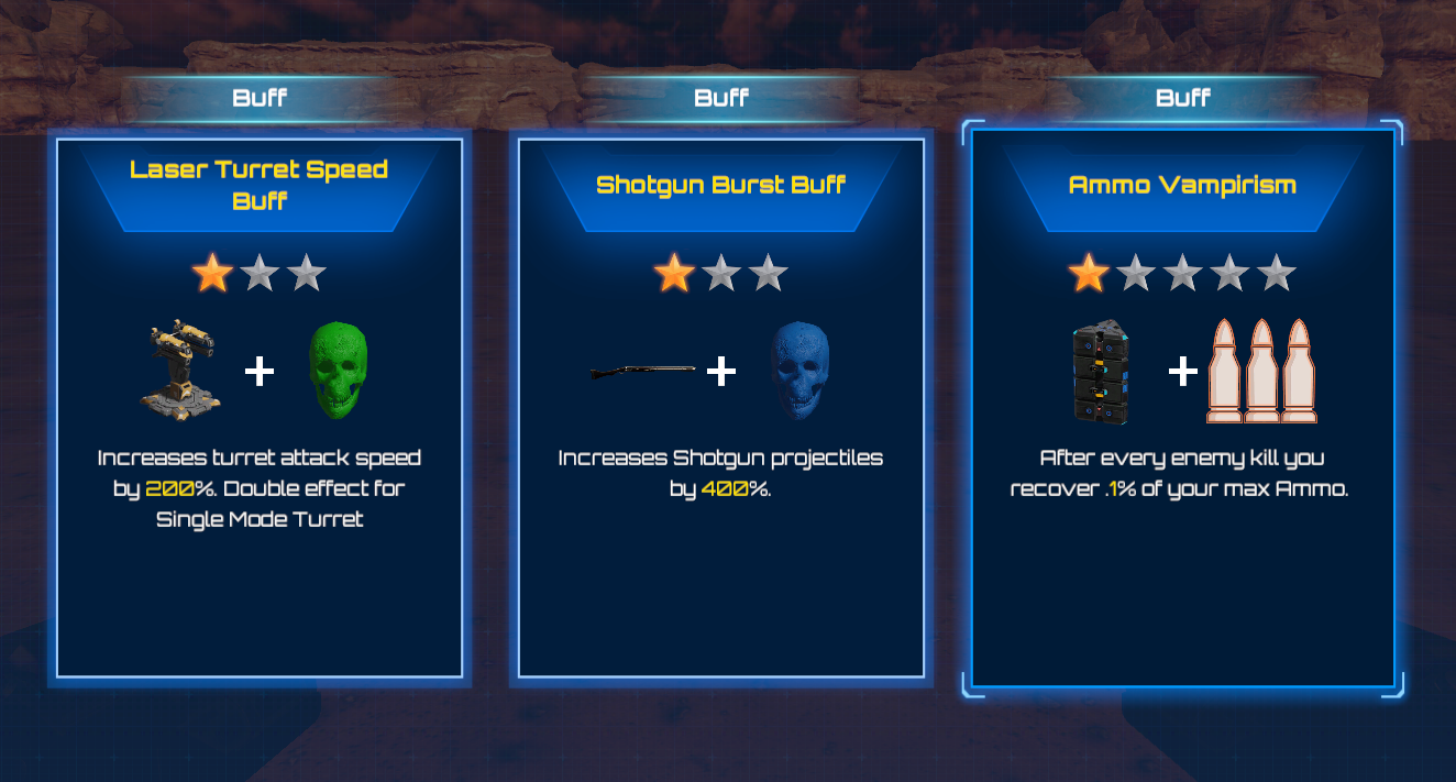 There are 3 types of cards. Building - to get access to the buildings, knowledge - allows to use skulls to upgrade weapons, buff - buff building for adding extra stats or features.