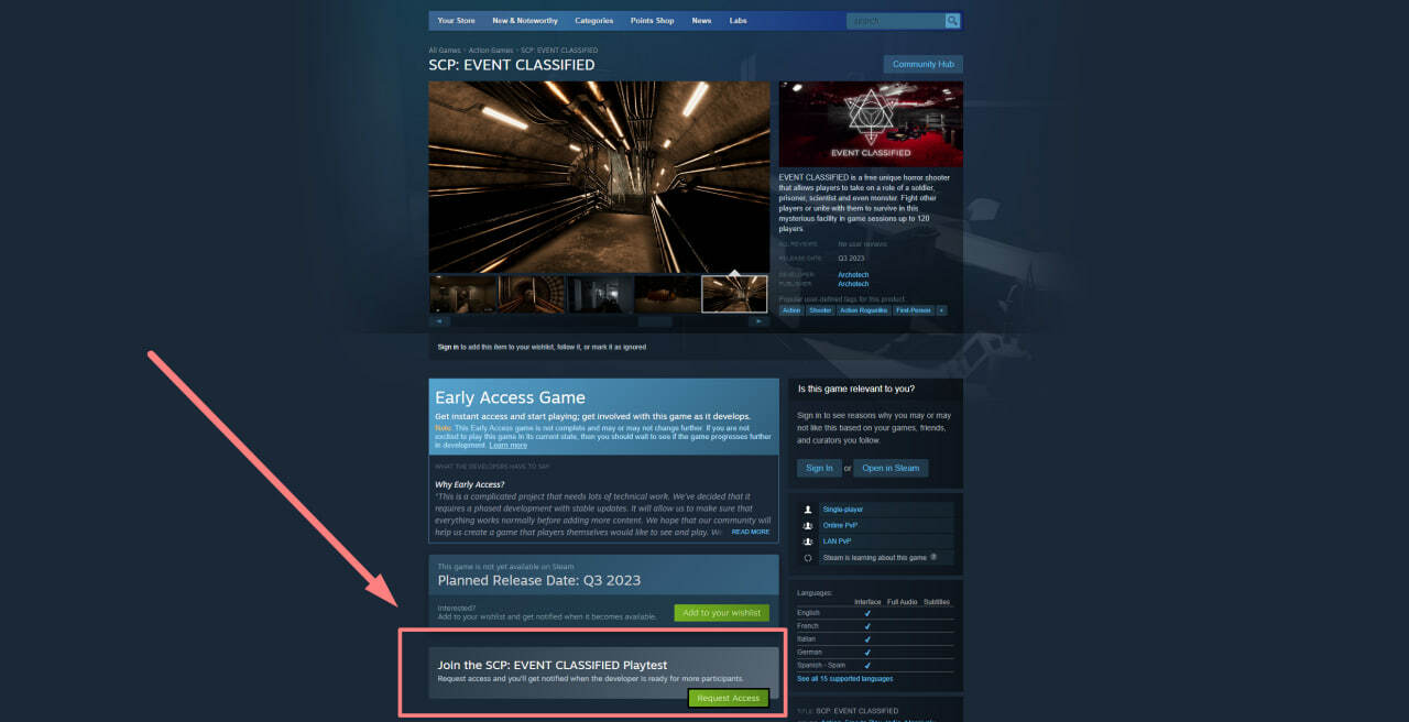 1. THIS IS A PLAYTEST, NOT EARLY ACCESS. 2. CHECK GUIDE SECTION: https://eventclassified.com/en/guide 3. The purpose of the playtest is to check the stability of the game and find as many bugs as possible. This is far from the final product. 4. Many mechanics and aspects of the game will be changed. 5. the INVENTORY will be completely redesigned, but for this playtest we left the old one. 6. Please leave ANY feedback on Steam or our Discord! It will really help us make the game better :3 7. Even YOU can join the development right now. Check this page - https://eventclassified.com/en/vacancy