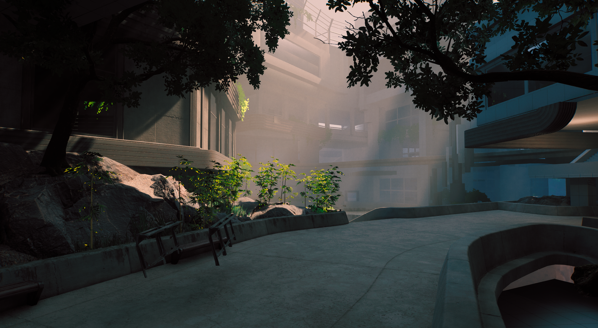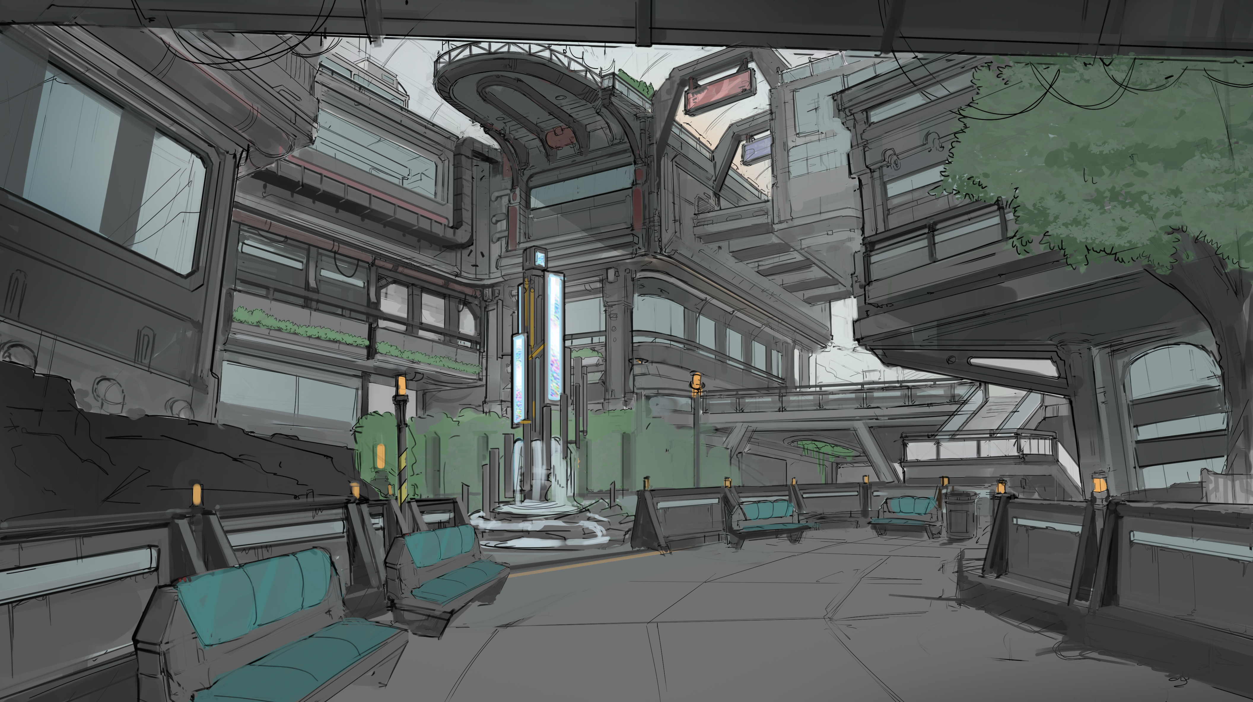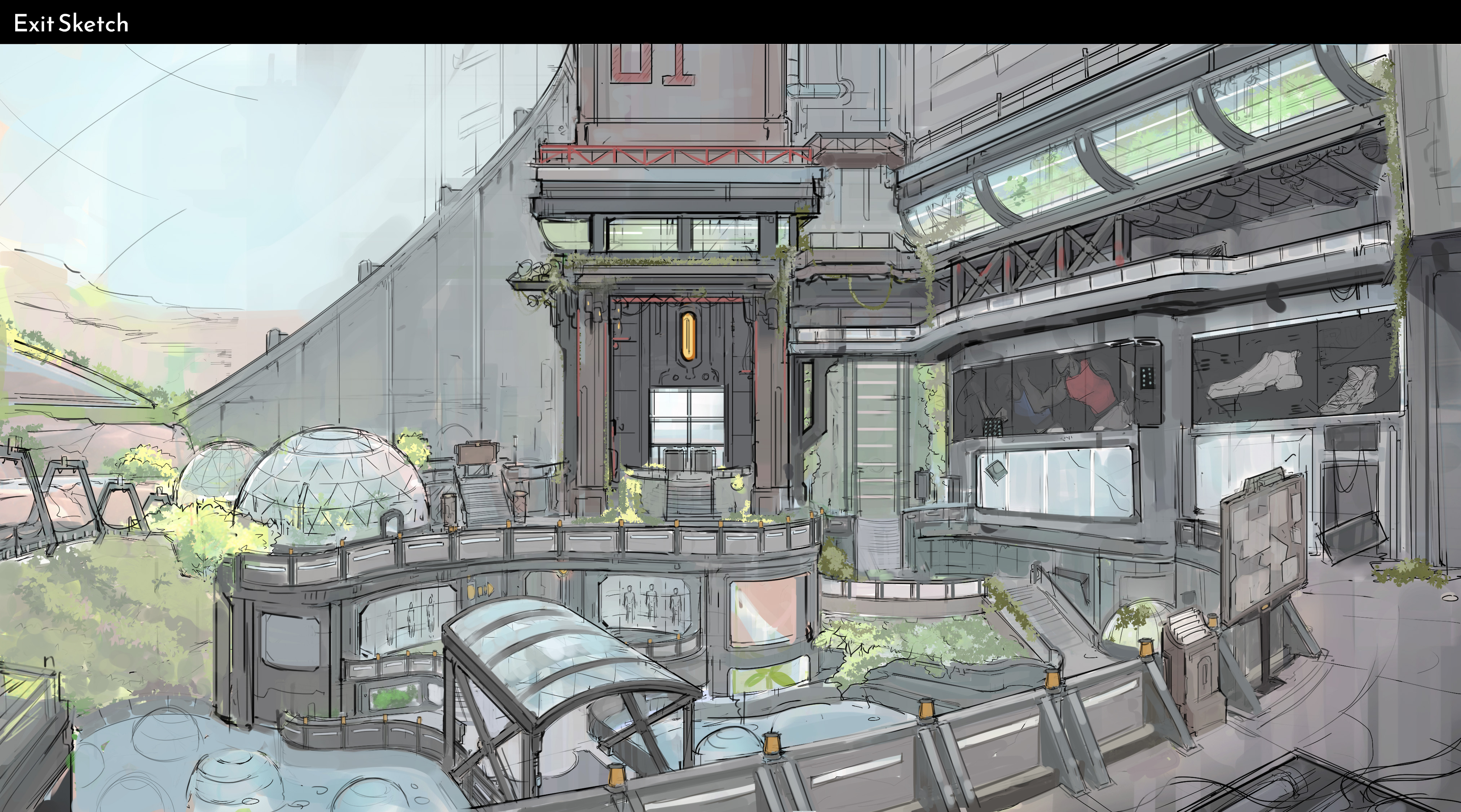 One of the next areas we will be working on is the North Wing Plaza. This area is very open relative to the ones preceding it and will feature multiple paths, changing level structure, and plenty of interesting bits of lore and other things that should make this place very memorable, not to mention the stunning views of the Military Zone that dominate its skyline.