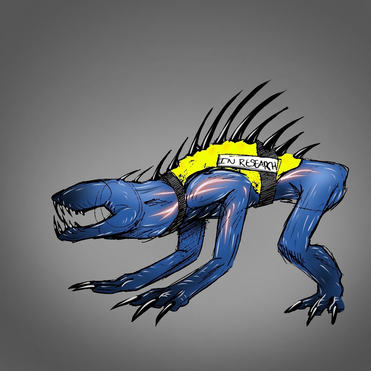 Introducing... SCP-939-B, also known as Greg! This lovely bundle of joy (literally) was created by the top bio-engineers at ARC-Site 51! Opposed to his red counterparts, he is friendly as a dog, and blue! This non-hostile version of SCP-939 is a trusty companion and will accompany you in some parts of SCP: Submerged, maybe he will come in handy? (Concept art by @BagelByteArts)