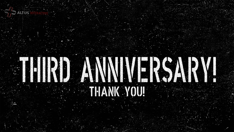 Hello everybody and welcome to the company's third anniversary! Yes! It's officially Altus Interactive's third anniversary! We just wanted to thank you all for all the support you have given us these past few years! Thank you for still staying by Altus's side! 3 years ago, when the company was founded, I had no idea we would get this far! Thank you!