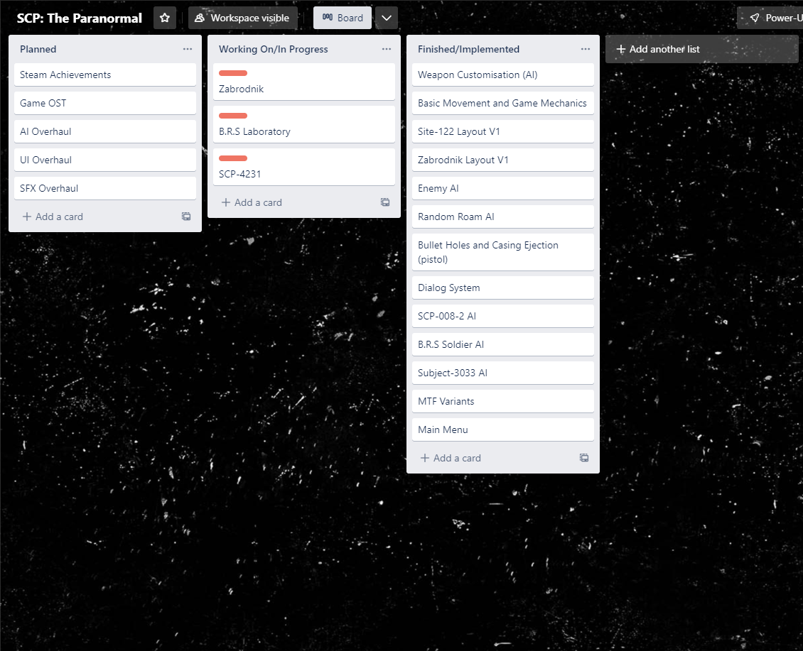 If you are a member of our discord server, then you probably already know about this, and if you saw the steam announcement. But we made a trello roadmap. A few weeks ago, our team got the idea to make a trello roadmap. And after some thinking, we decided that we will make one! We got a few members of the team to make Trello accounts and we started working on the roadmap. After a while, we got a small prototype working and showed it to our discord members. The community seemed to like it, so we decided that we would continue making the roadmap. Making it was quite boring, the worst part was writing the card descriptions, it was extremely boring. We had to write an extremely in-depth description of every feature that will be in the game, we even wrote descriptions for stuff already implemented. That took a while, but with help of the team it was even shorter. For some stuff, we didn't know what to write, so we just left them blank. Then we added some pictures. And after a while, we finally completed the roadmap. And now, it's yours to enjoy! Here's the link: https://trello.com/b/QrpZsTQd
