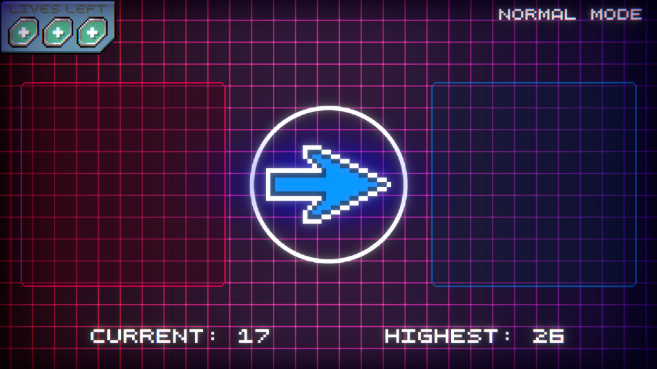 I've also changed the timer to only start ticking down after the first click, as well as guaranteed the red square to be the first one active at the start of each run. These changes should add a bit of predictability to the beginning of each session, while also complementing the new gameplay updates, as well as the change to player lives in normal mode detailed below. I'll be looking forward to feedback on these updates!