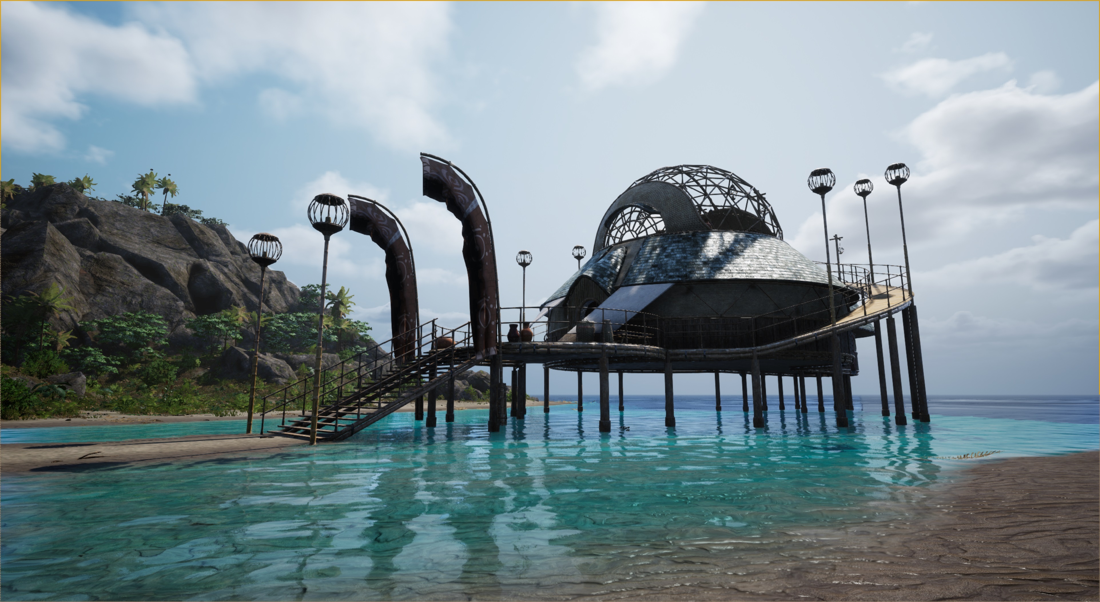 The first thing you saw after docking on this island is the rocky mountain and strange structure with a lot of questions.
