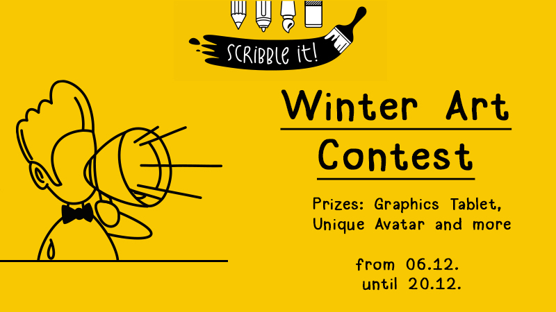 Ready? Then waste no time and head over to the Discord server!! Show us your ideas of a perfect winter and/or holiday themed Scribble. Participate to be the next Art Contest Winner and enjoy one of the many prizes.