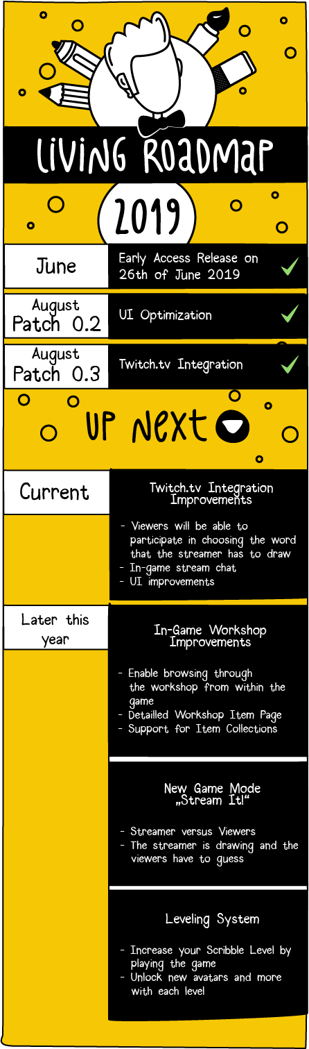 This patch is mainly about the first, very simple integration of Twitch.tv which enables viewers to make guesses for their broadcaster in Scribble It! and Guess It! game modes.