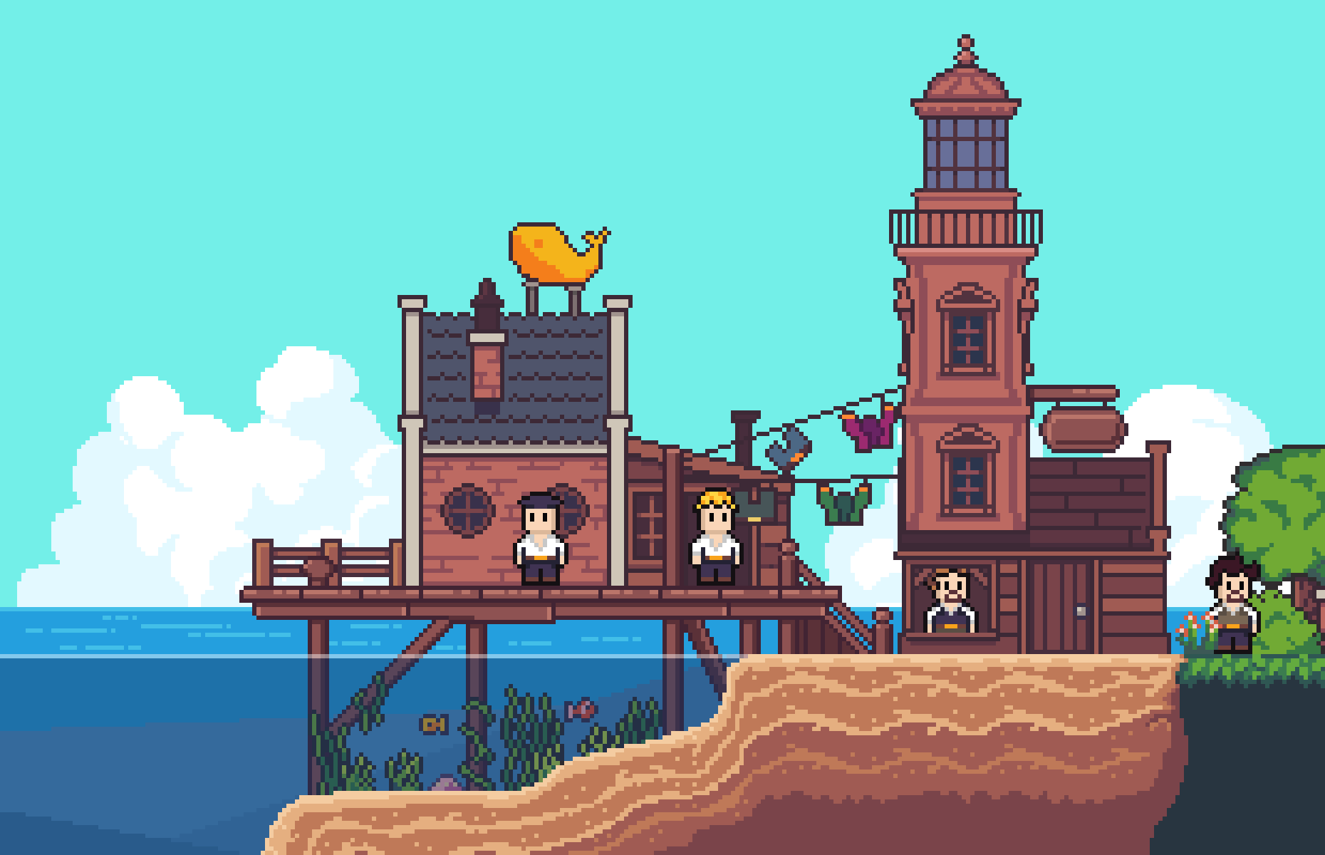 My motivation has always been to build something inspired by FTL and Stardew Valley. The next goal for Seablip is to work more on islands, NPC's, and cut-scenes. I want to tell a story with Seablip, and this is non-existent in the alpha version. You can see some of the elements I want to use. Like Grim, for instance, Grim will be tightly connected to the main story in Seablip. Before I can start that work, I will need to do some groundwork first: