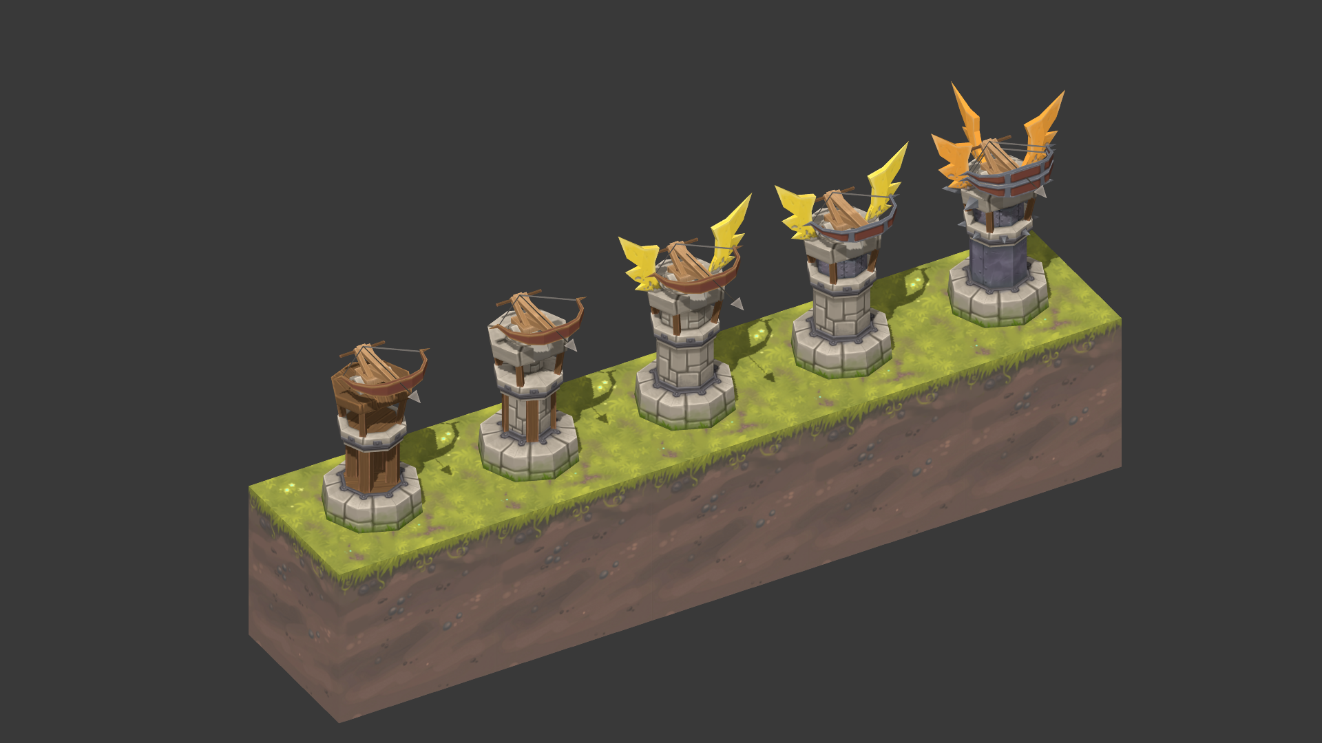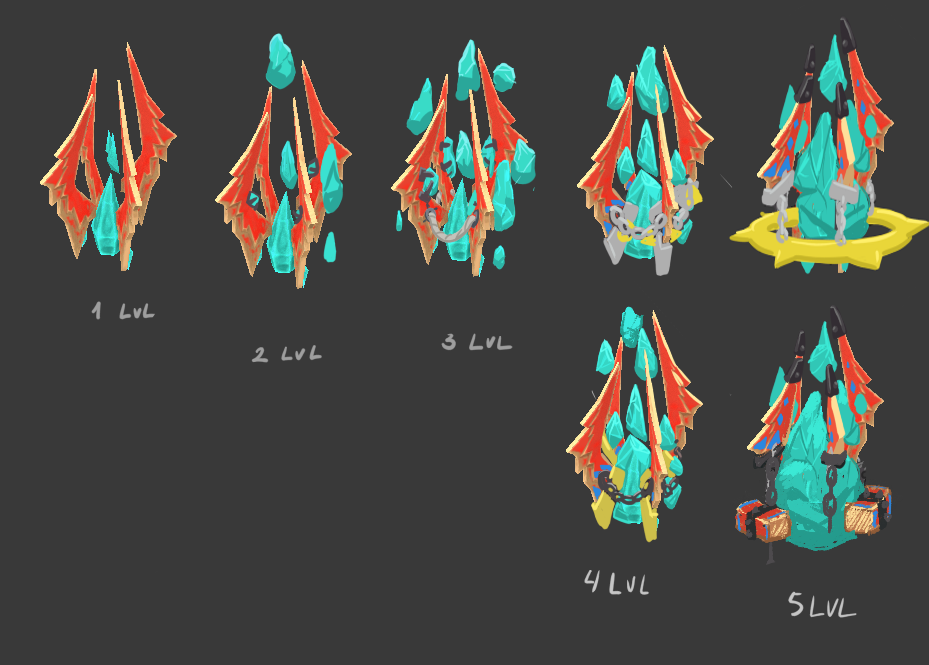 So let’s start with an image dump! More precisely, how all the different defense structures and traps will change when you upgrade them in-game.