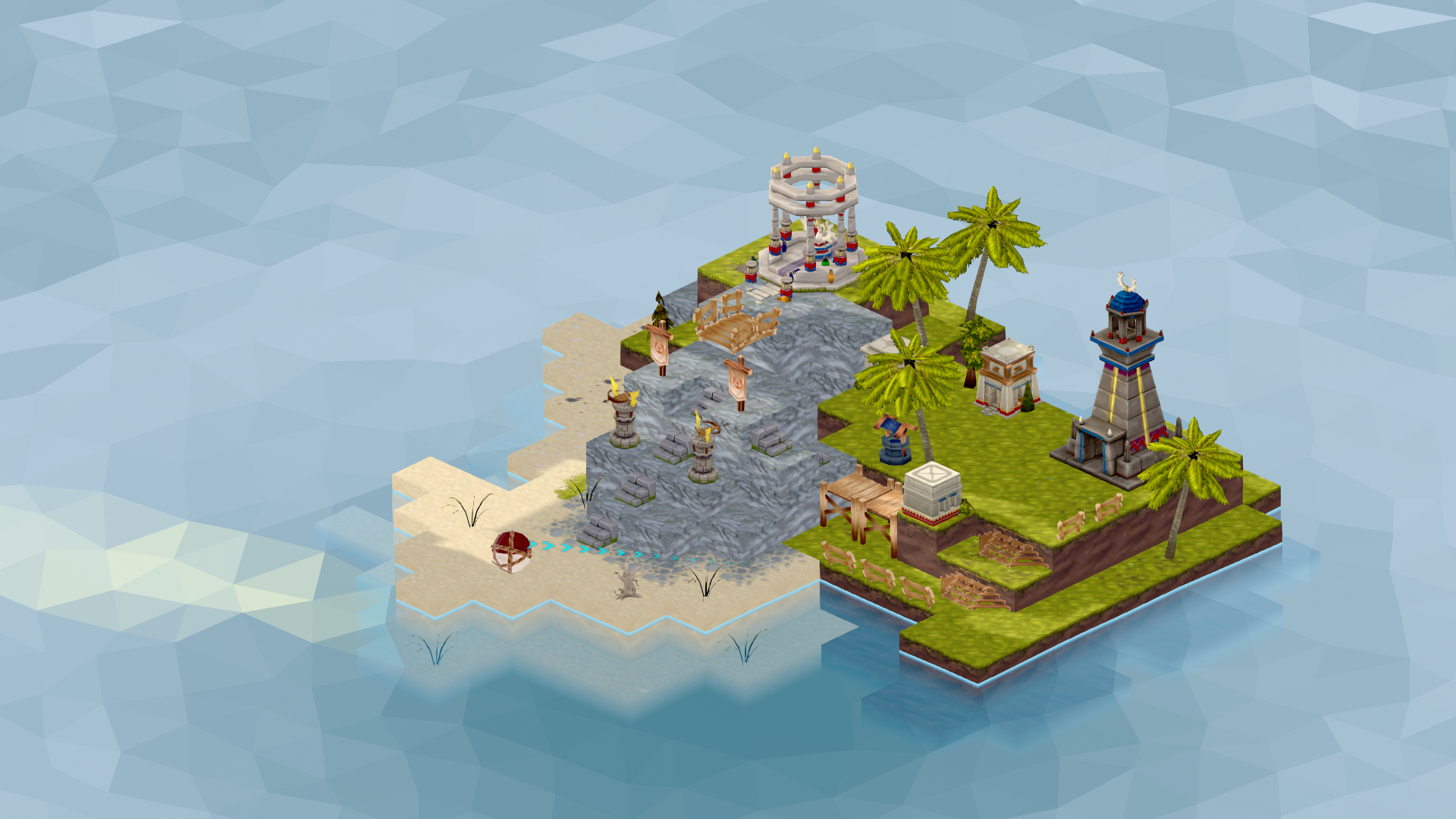 Now that everything was in place our first REAL island was ready to be created. At that point, we were still using props that were made for the concept and wouldn't end up in the final product. But this was the 'blueprint' for the future of our game and it's graphical style.