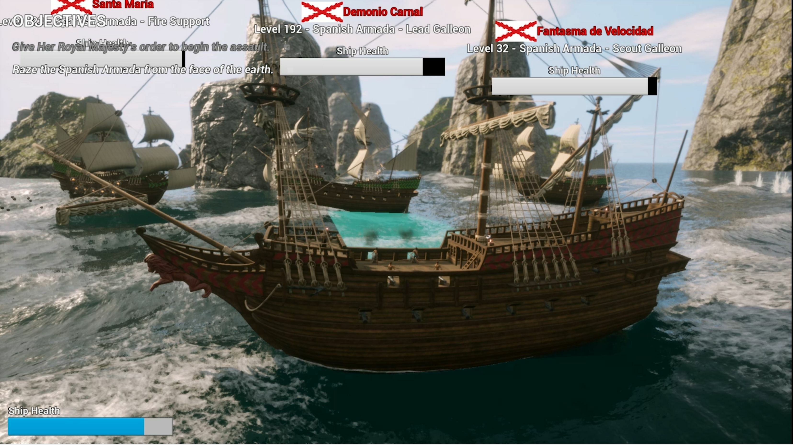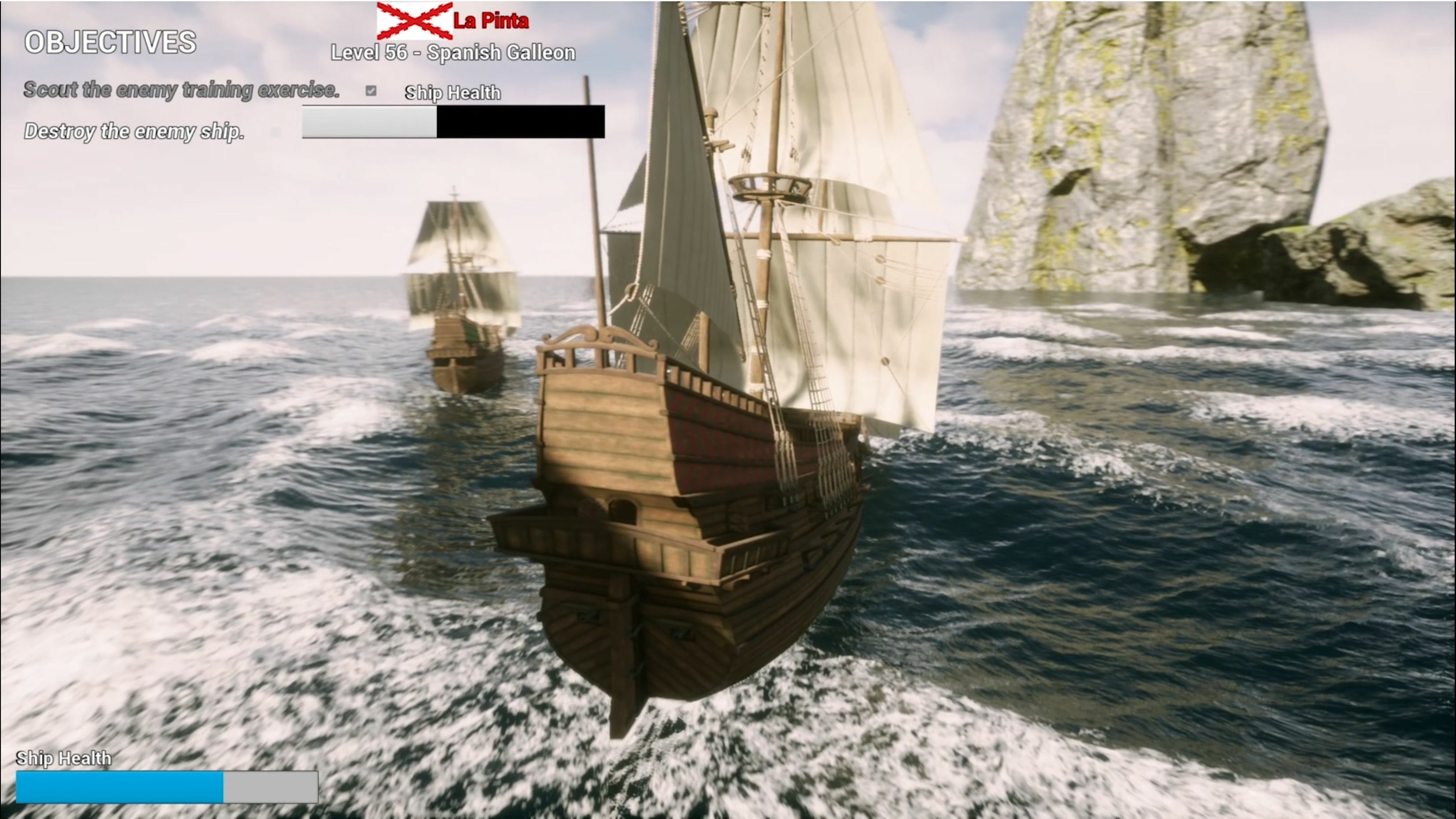 There are many factors that can affect the performance of a ship. For instance, the movement speed of a ship highly depends on the ship type (Sloop, Galleon, Man-of-War) and also the wind speed. You can slow down any ship by damaging its sail but be careful the enemies can do the same to your ship as well.