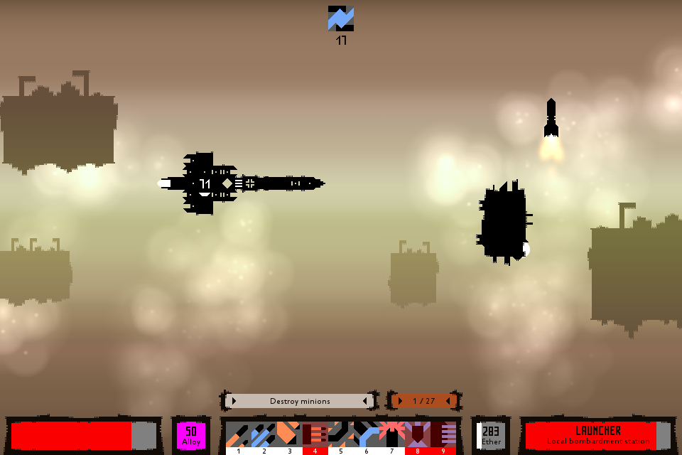 Launcher attacks player by launching missiles, that fall on the player from the top of the screen.