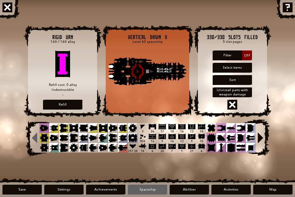 New parts are now highlighted and can be interacted with through management: Uninstalled, dismantled, sold, filtered, and sorted.