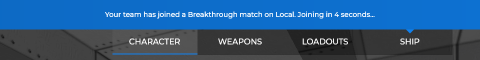 Changes: - Breakthrough servers can only vote for Breakthrough, so 8 players aren't lost switching from Breakthrough to Salvage - Players can now shoot when out of bounds again - When captured, zones in Breakthrough are 'locked' and can't be contested for 20 seconds - Capture Zone letters show on the minimap next to the zone - Removed the 'Back to Ship' button and you can now access the escape menu and settings during the post-match victory stage