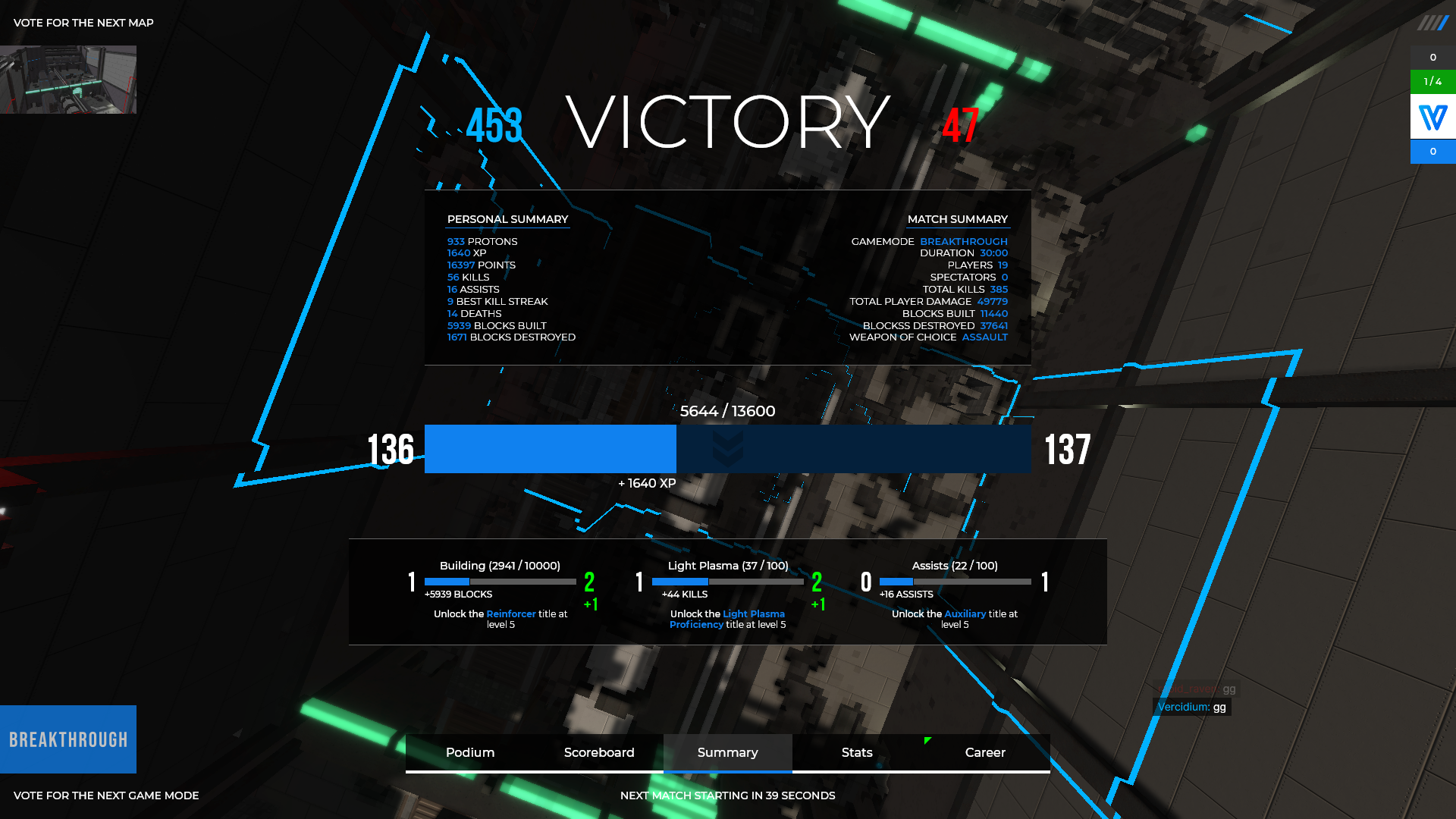 Verc's next steps are revamping the post-match screen to show more detailed stats, better map voting and better navigation between the end-screen tabs.