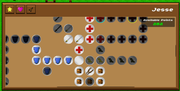 Apart from that testing, I've started implementation on a skill tree. Everything you do in the game will get you skill points and you can take these skill points and progress your character in whatever way you see fit!