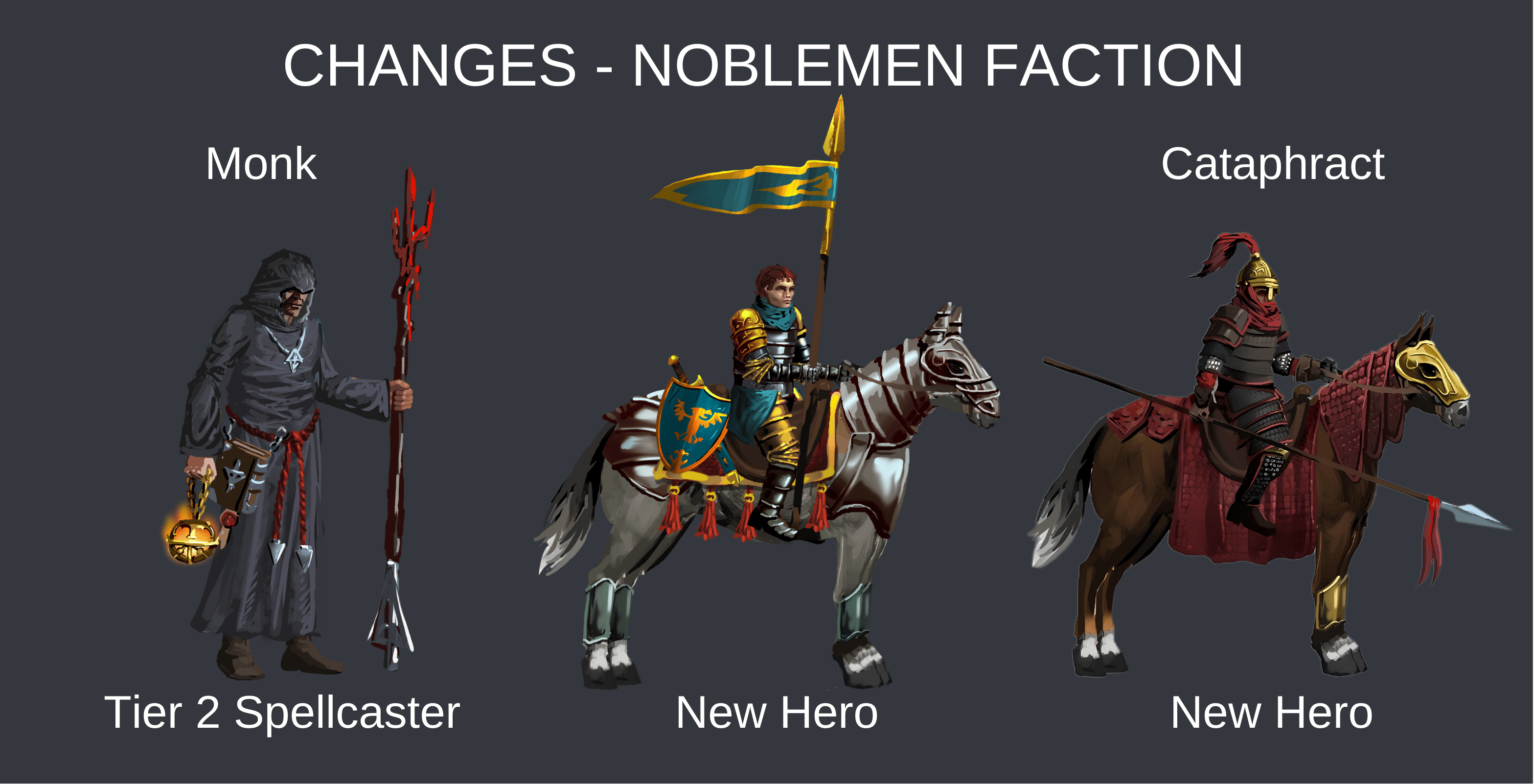🛡️ Nobleman Faction Additions: New Heroes: Catapracht & another Knight join Aglovan’s forces! Spellcaster Update: Tier 2 Spellcaster is now Monk instead of the previous Believer unit.