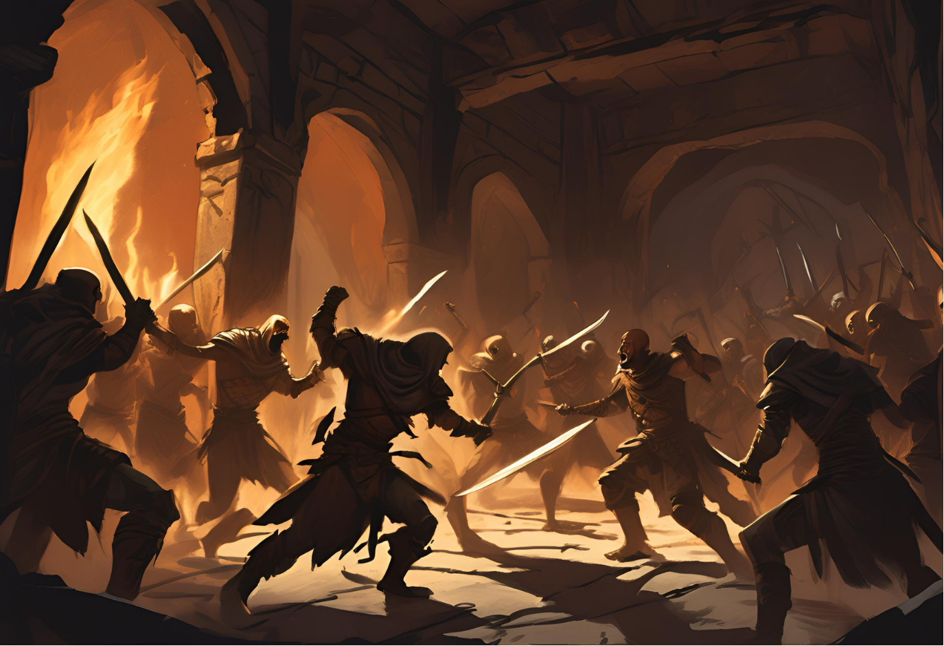 The group pressed forward, their torches casting wavering light against the stone walls. Every shadow seemed to move, every whisper carried the weight of the dead. The first chamber was eerily silent, but the second was not so kind—skeletal warriors rose from their slumber, their empty eyes burning with unnatural light.