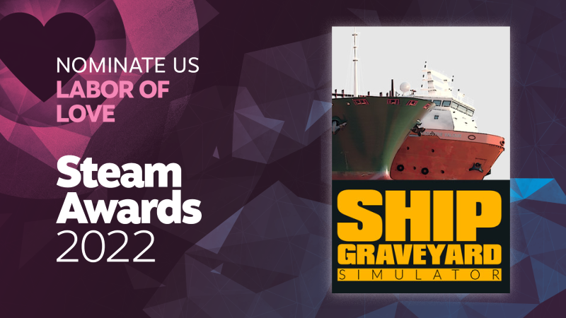 For over two years from development to release, we've built a great community around Ship Graveyard Simulator and today we've been nominated in the Steam Awards for "Labor of Love"!