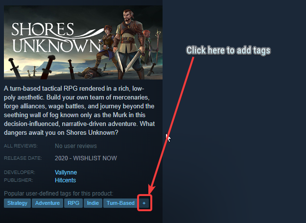 Then click on the little "+" sign as shown on the screenshot below and apply some tags you feel match the game in your opinion.