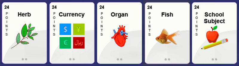 Releasing this patch update to fix error with greek letter category card (appears in Science - Level 2) not accepting words. Additionally, this update includes several category word list additions, as detailed below.