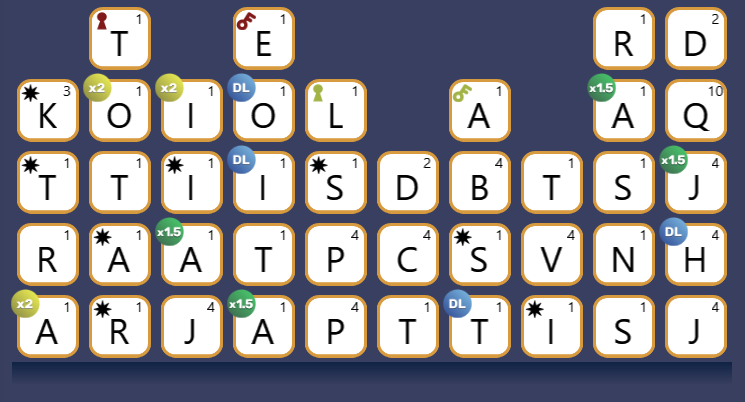 Letter tiles with Word-And-A-Half (x1.5) modifiers