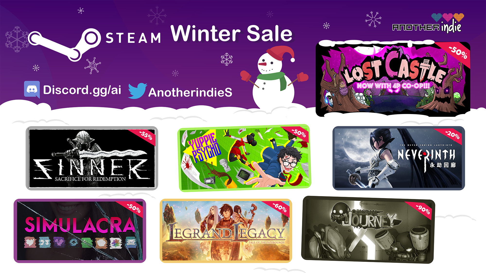 Another Indie and DarkStar are bringing SINNER: Sacrifice for Redemption to the Another Action bundle. Get this awesome collection of games including Neverinth and Lost Castle for a whopping 20% discount if you buy or own all titles. Do you have what it takes to survive, prove victorious, and conquer your foes? 💥💥💥💥💥💥 ❄️Steam Sale is upon us!❄️ December 20, 2019