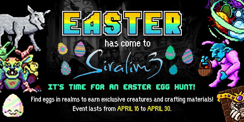 Easter has come to Siralim 3! From now until April 30, you can find Easter Eggs in realms that hatch into exclusive creatures and materials.