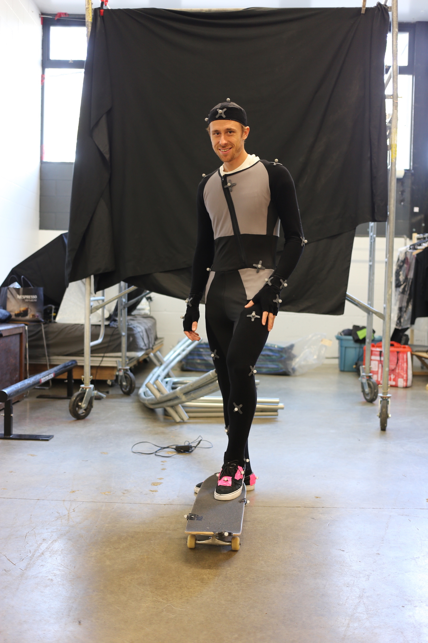 A challenge with motion capturing skateboarding is that it requires quite a large area and flooring that has the right hardness and amount of grip to pull off clean flat-ground tricks.