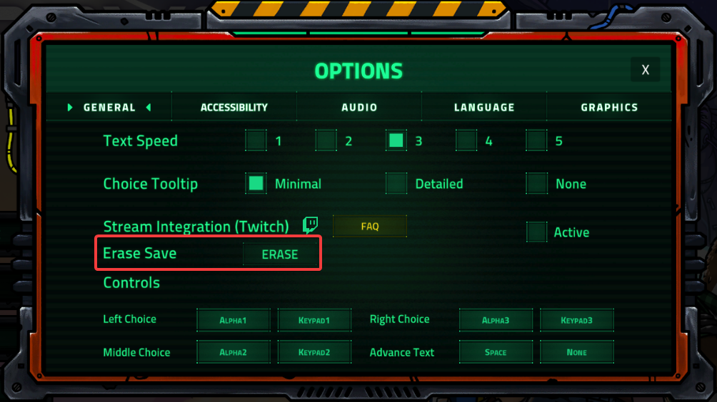 Added new "Erase Save" button, that resets the local and Steam Cloud save. This can be used to fix bugs where the game doesn't reset properly on it's own. This button is only available in the Options menu when inside the Main Menu