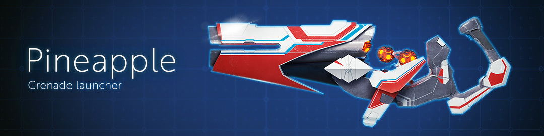 Skyfront Skirmish: Pineapple Pop is dedicated to our long-awaited grenade launcher! The weapon lets you blast pineapples at your opponents and detonate them remotely! Do you need all three grenades to kill an opponent? No. Does the combined explosion look hella cool? Yes!