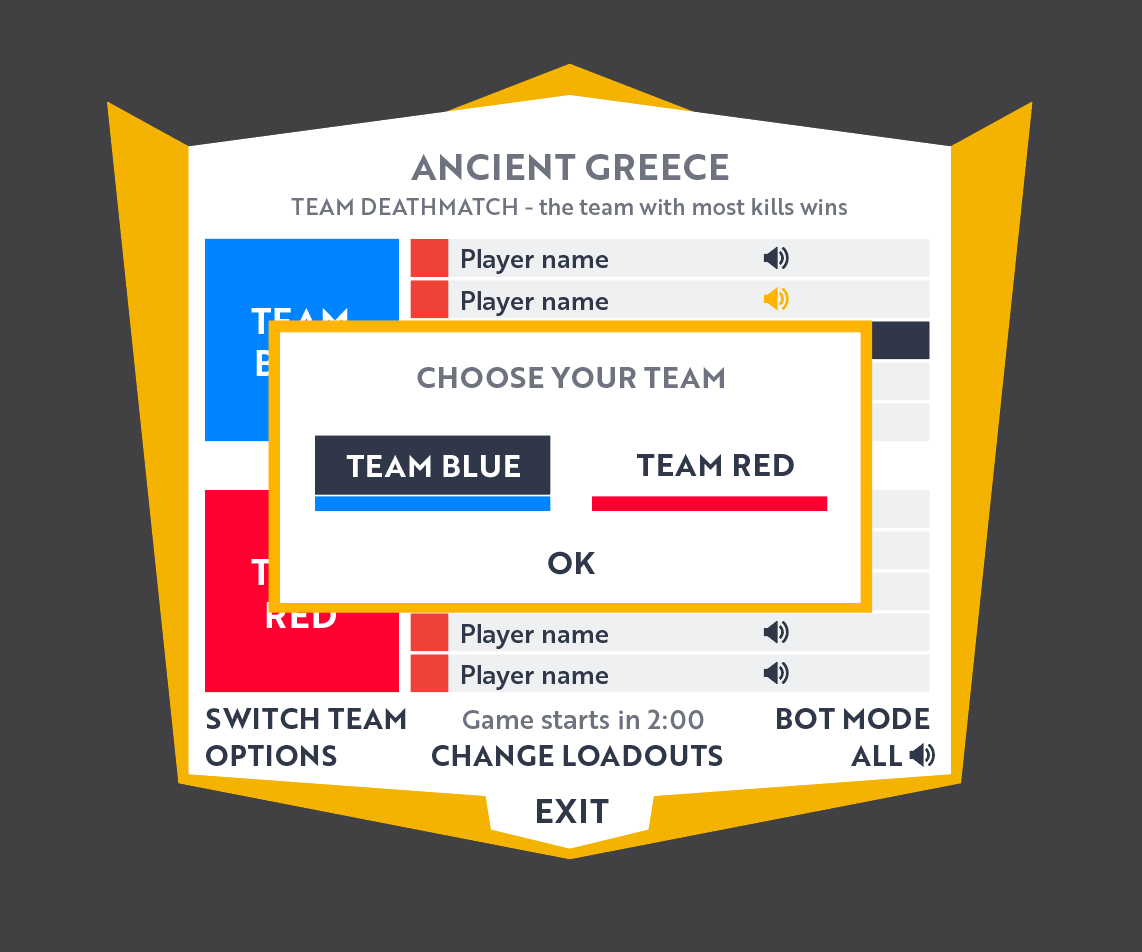 The Team Deatchmatch game mode now allows players to select their team. When you join Team Deathmatch, you will be asked, which team you want to join. As long as the match hasn't started, you have two additional chances to switch teams. Mid-match team changes will not be possible.
