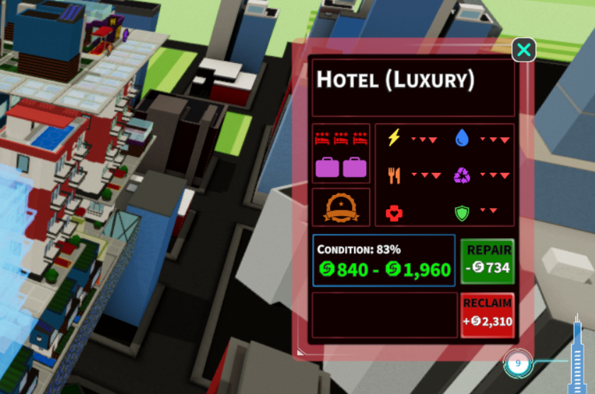 Maintenance Center This larger module is a command center for Maintenance Offices throughout your Skytropolis and allows you to trigger repairs for all modules on floors with Maintenance Offices. This means you can repair everything with one click.