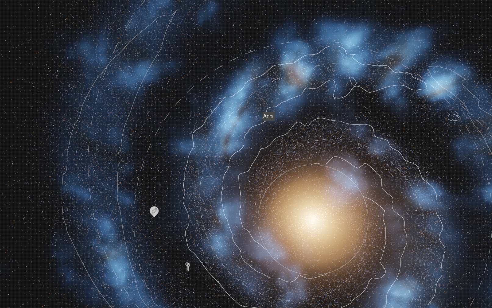 The Rift: Quietly nestled between the Core and the Arms, the Rift offers a peaceful refuge, rich in history but not as strategically vital. A hidden gem for explorers.