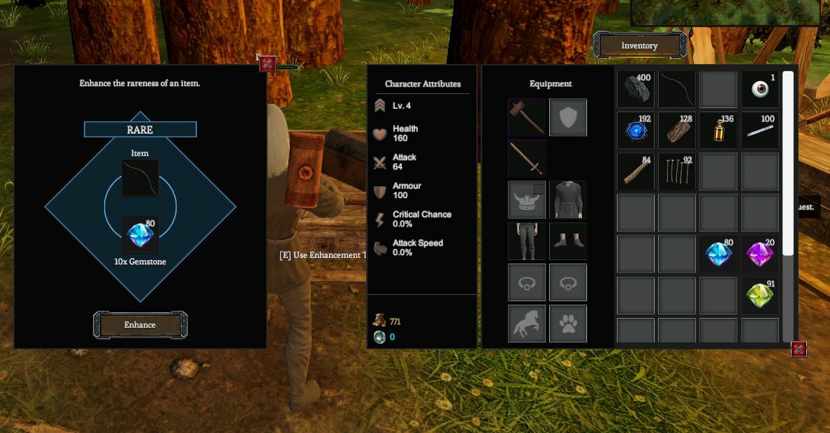 All enemies now drop different gemstones which you can use to upgrade the quality (rareness) of an item.