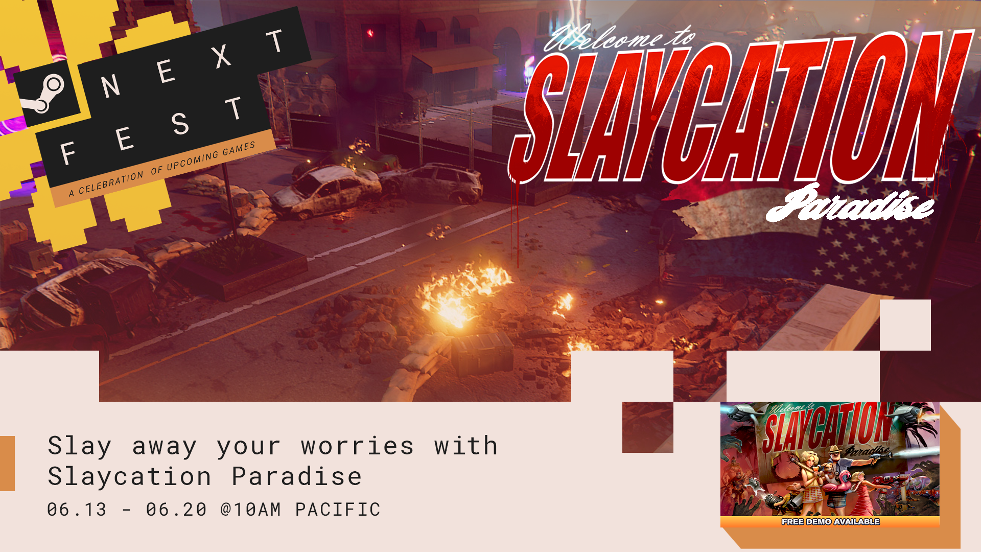 We hope you're having a blast taking your first steps into Slaycation Paradise with the free demo in Steam Next Fest!