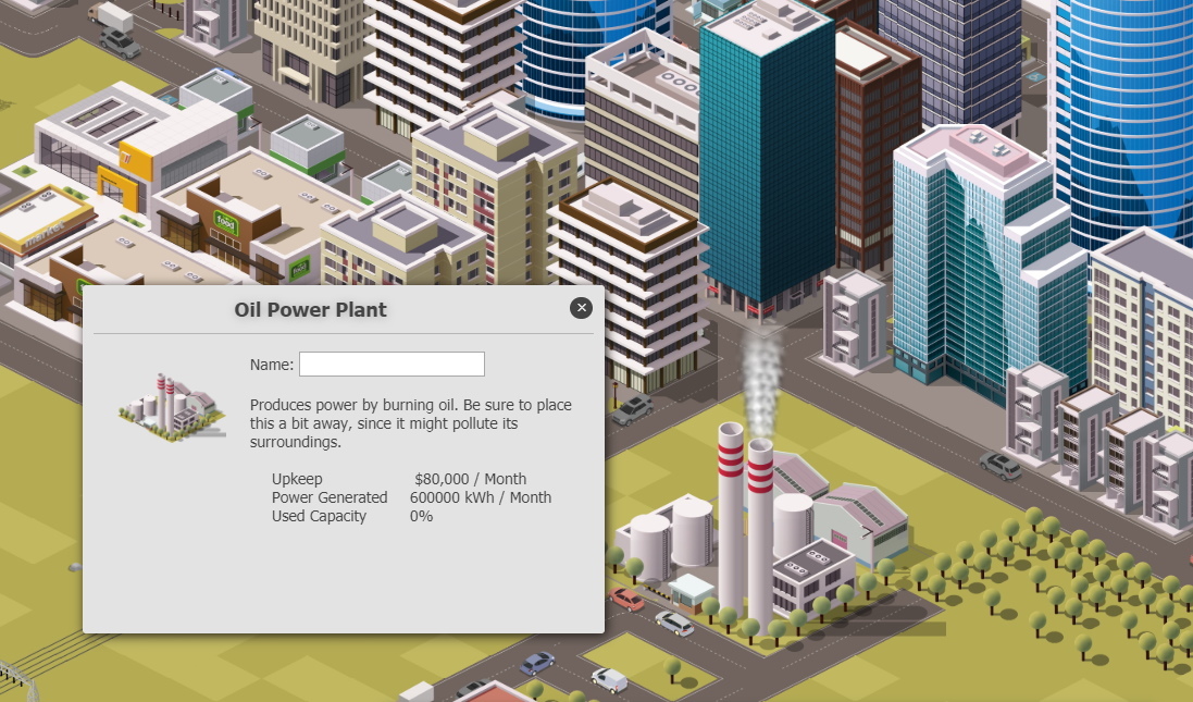 There is now an oil power plant available in the game. It can be used as smaller alternative to the coal power plant: it unlocks at the same time, but costs much less, is smaller, a bit cleaner, but also provides less energy at a in relation larger upkeep cost.