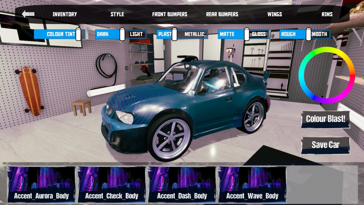Along with the new vehicles we had to give you a garage to work in. The garage allows you to be completely customizable and allows you to change your bumpers, wings, colour, and wrap.