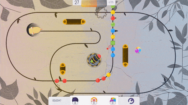 To further enhance the feeling of success when you finish a level, well, the liana that makes up the path that the marbles travel becomes flourishing again and many leaves will sprout from it. As for the snake, it gets stunned.