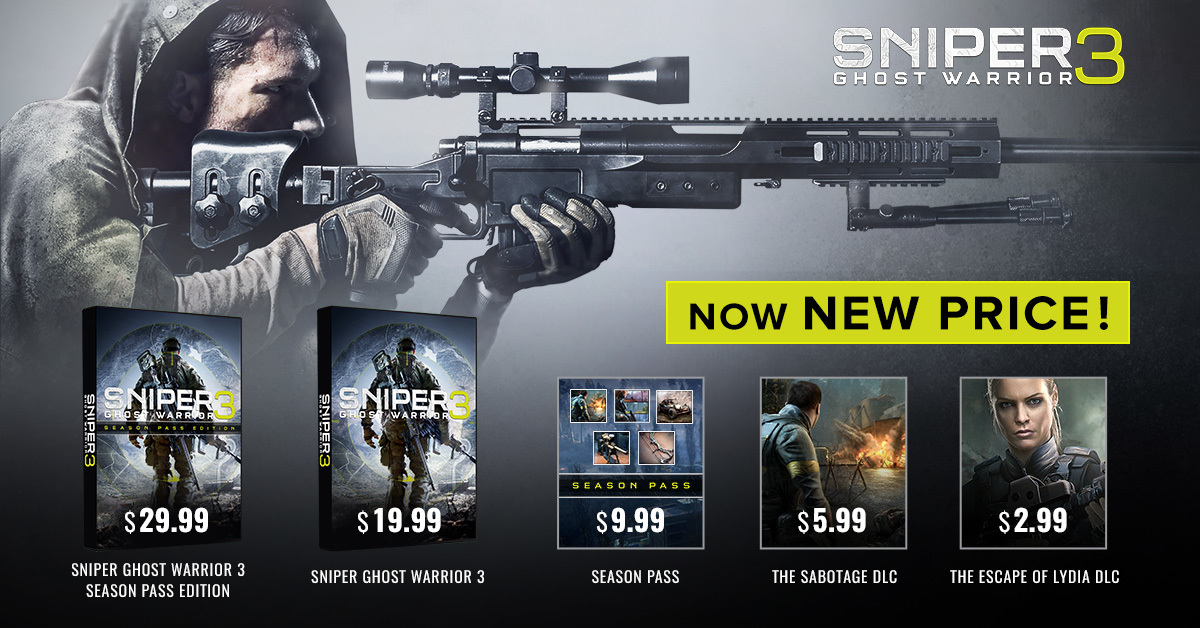 NEW SNIPER SAVINGS begin May 8th with Sniper Ghost Warrior 3 starting @ $19.99. Sharpen your sniper skills playing your way: choose your mission, play style, single or multi. Get the latest characters, missions, maps and weapons DLC available for new low prices. BE MORE, for less.