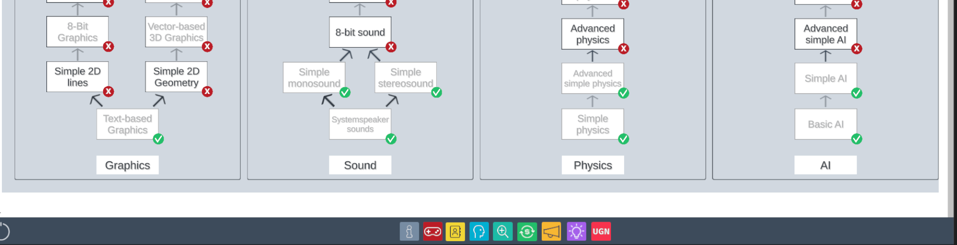 Development of new game-engines: You have 4 mini-skill-trees to choose features from to unlock. The available features depend on already researched features and the year you are currently in during your play session.