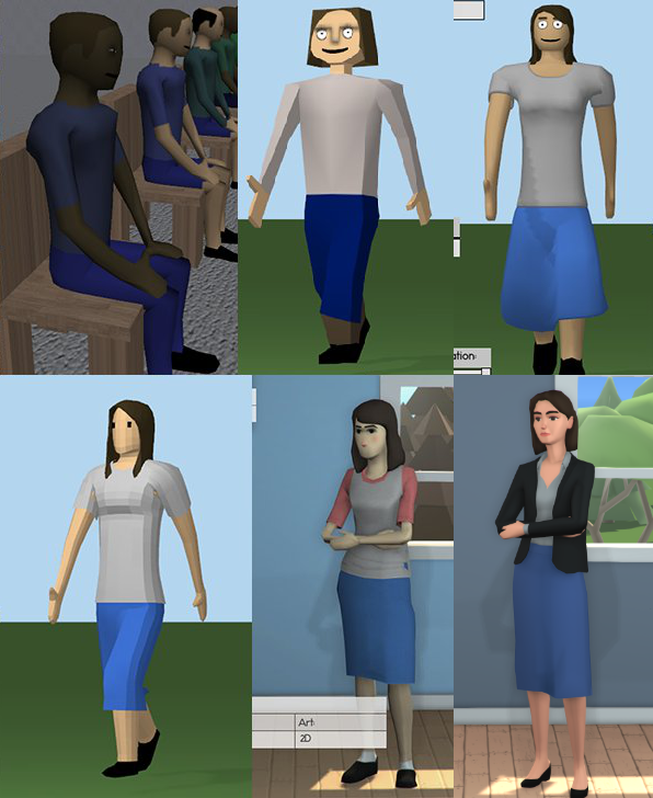 Software Inc. has now been through 6 character model iterations over 8 years, and the final version has gained a mouth, some sclera, pretty patterns and 44 things to change about the face!