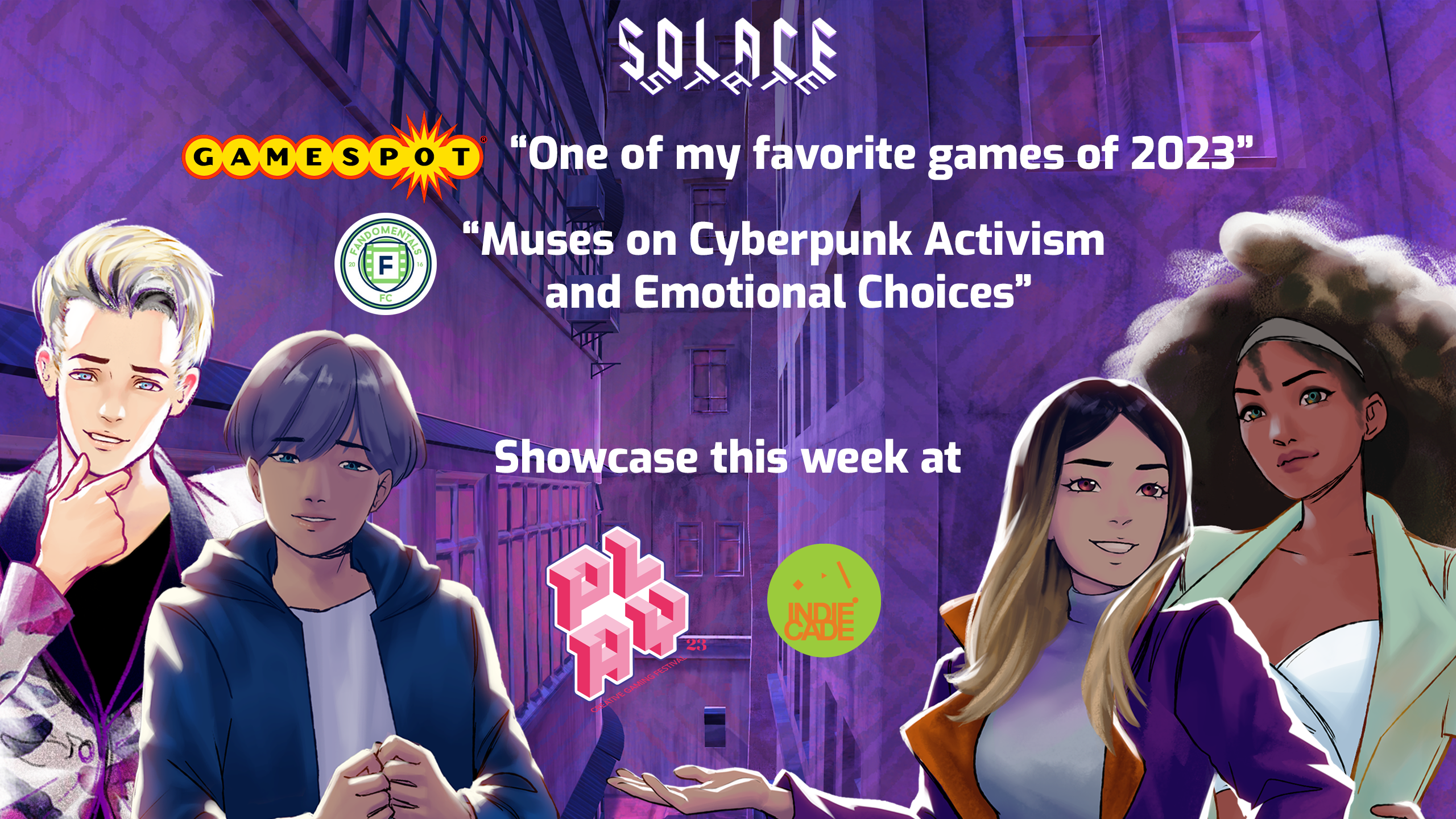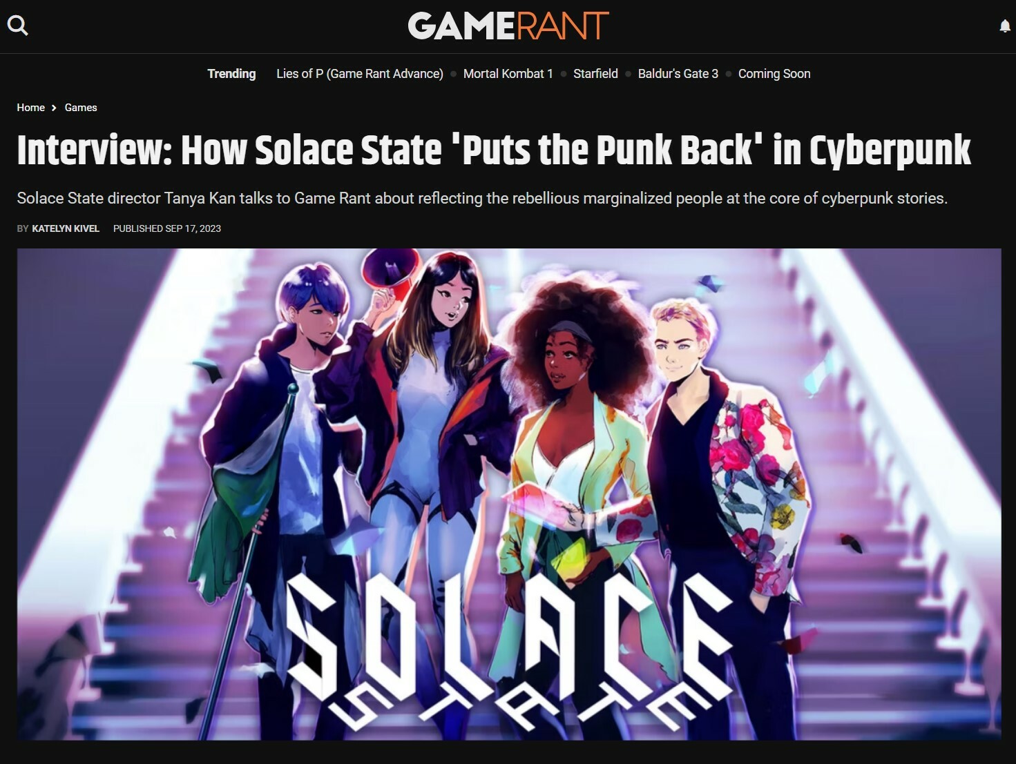 Director Tanya Kan has been part of some lovely interviews talking about the unique approach to cyberpunk with Katelyn Kivel from Game Rant. You can read an article about our spin on the cyberpunk genre here, specifically about Solace State's coming-of-age tale here, and the full interview transcript here!