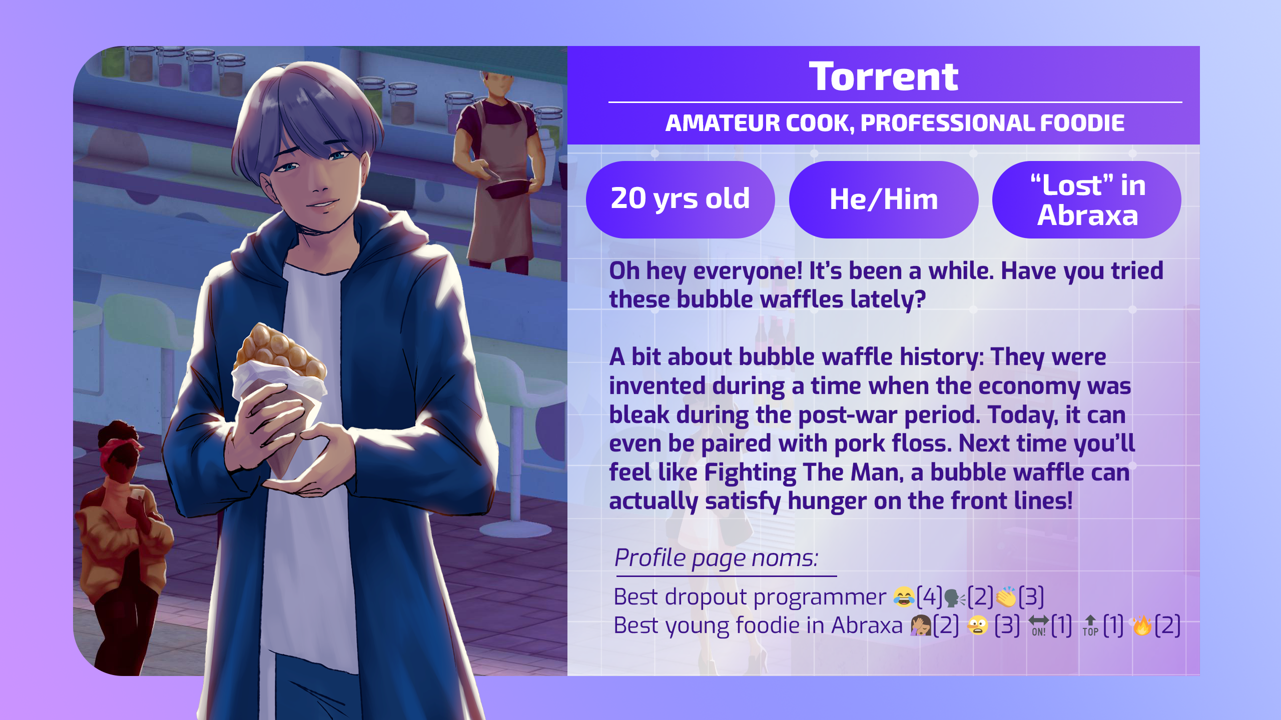 The kind thoughts are encouraging and they help remind me of my passion: The desire to tell stories and to make art: starting from my subjective window of the world, but also suffused with narrative interviews with folks from different career paths and perspectives. I don't think I want to make a game for 'everyone', but I also don't need to. Studios, many with far larger budgets and established pipelines, already bring to life many universally appealing games, and I enjoy the heck out of them! But I did make this game for people who know what it feels like to be lonely in their queerness, or their immigrant and hyphenated identities, or their trauma, or want to learn more about what that's like. It's something I've wanted to do all my life. So I'm so glad it's out, and I am thankful that you're here!